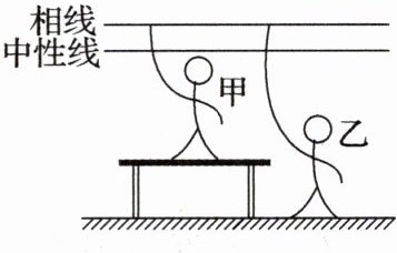 (选填“漏电保护器”或“空气开关”)会自动断开保护电路。如图所示,甲站在干燥的木桌上,乙站在地上,则乙