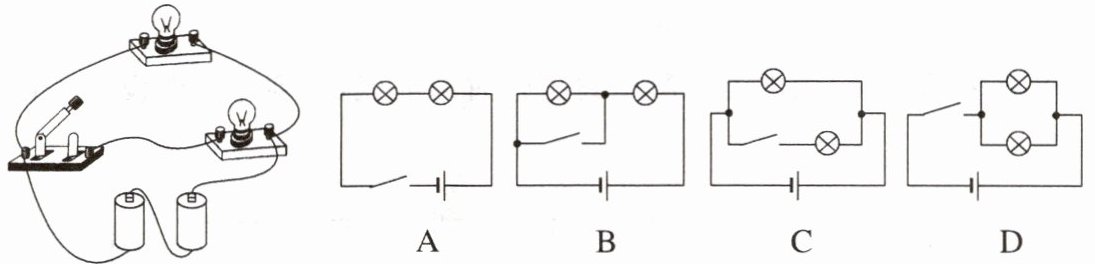 3. (电路的连接)如图所示的实物图对应选项电路图中的( )