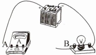 5. (电流表的连接)在如图所示的电路中,用电流表测量小灯泡中的电流,估计小灯泡中的电流大约为0.7A,请将A、B线头接入合适的接线柱。