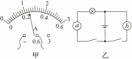 3. (电流表的读数及使用)如图甲所示是电流表的刻度盘,当指针如图所示时,读数是______A,若把这个表接在图乙所示电路中使用,应接在______(选填“a”或“b”)处。