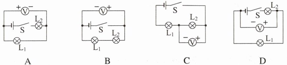 5. (电压表的使用)下列电路中电压表能测出$L_{1}$两端的电压的是 ( )
