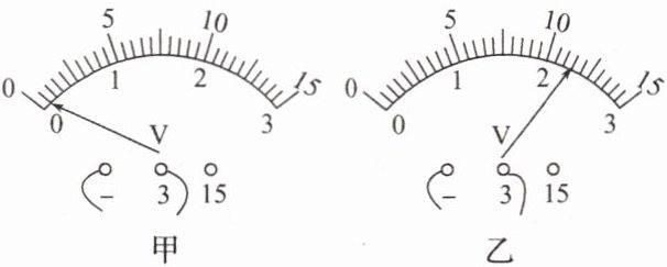 4. (电压表的读数及使用)如图所示,使用前出现如图甲所示的情况,原因是____。调整后测量电压,如图乙,电压表的读数为____V。