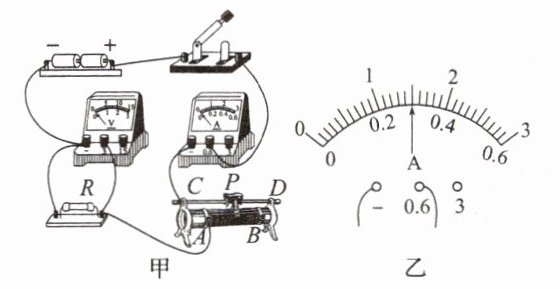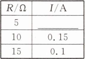 (3)排除故障后,用5Ω的电阻替换电阻$R$接入电路,闭合开关,调节滑动变阻器,使电压表示数为1.5V时,电流表指针位置如图乙所示,将电流表示数填入表中。