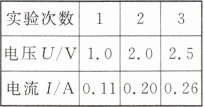 (3)在实验操作过程中保持____不变,闭合开关时,调节滑动变阻器的滑片$P$做了三次实验,数据如表所示。