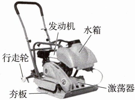 5.如图是一种常用“柴油平板夯机”,广泛应用于路面施工、场地填土等多个方面。使用时柴油发动机提供动力,激荡器带动夯板上下运动。下列关于使用该夯机说法正确的是 (