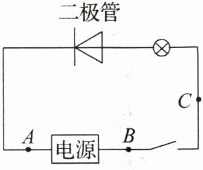 3. 同学们发现,对于灯泡来说,电流在灯丝中无论沿什么方向流动都能发光,但是二极管只能让一个方向的电流流过它,也就是二极管具有