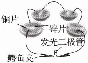 11. (2025·北京质检)如图所示,把4对铜片、锌片分别平行插入脐橙中,用导线把铜片、锌片和发光二极管连接起来,可以观察到发光二极管发光。在这个电路中,能将电能转化为光能的装置是 (