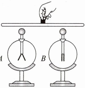 16. (教材素材题)取两个相同的验电器A和B,只让A带上电荷,可以看到A的金属箔张开,B的金属箔闭合,如图甲所示,验电器A的两金属箔所带电荷是