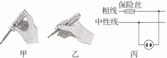 4. (测电笔的使用)为防止触电事故的发生,在家庭电路中,安装电路之前,必须要使用测电笔判断相线和中性线,如图甲、乙所示是小柯同学使用测电笔的两种方法,正确的是____。如用该测电笔测图丙中的插座,能使氖管发光的是____(选填“左”或“右”)孔。