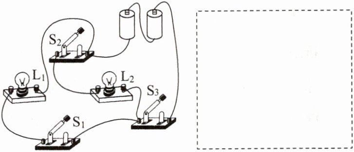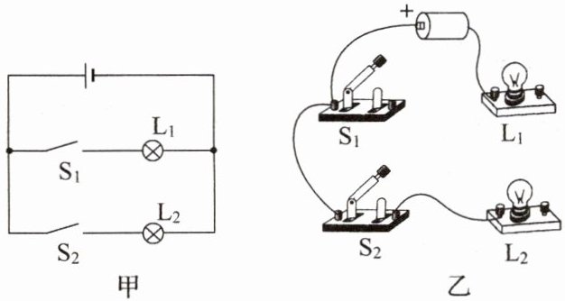 6.(2024·常州模拟)请在图中用笔画线代替导线将实物电路连接完整,使$L_1$和$L_2$并联,开关同时控制两个灯泡,导线不能交叉。