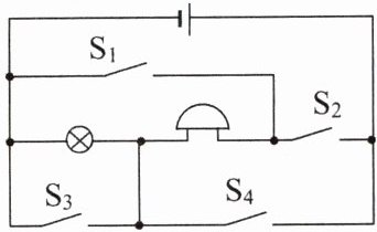 )A.当$S_2$和$S_3$闭合$,S_1$和$S_4$断开时,灯和铃串联