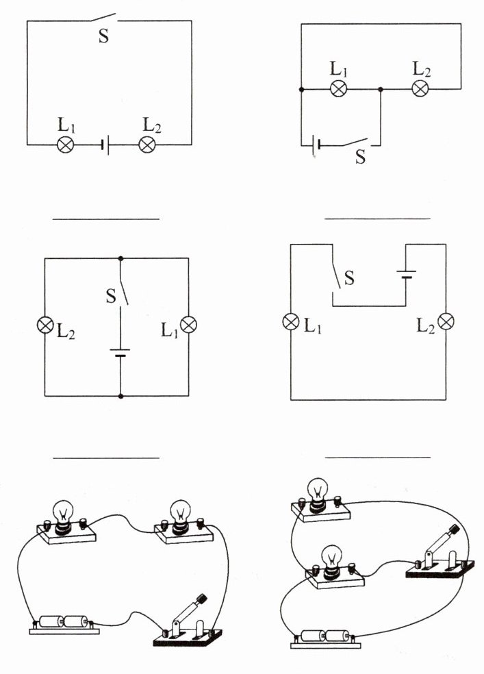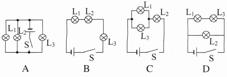 1.(2025·北京二模)如图所示的电路中,开关S闭合后三盏灯$L_1、$$L_2、$$L_3$属于并联的是(