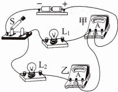 (1)若要测量通过小灯泡$L_1$电流,则电流表应串联在图甲中的