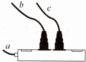 5. (物理学与日常生活)如图所示的插线板中,a接电源,b接台灯,c接电风扇,两个用电器