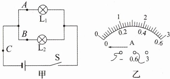 (2)若要测量A处的电流,连接电路闭合开关后,发现指针偏向图乙所示位置,其原因是