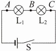 的小灯泡。(3)用电流表分别测出图中A、B、C三处的电流大小,如表所示: