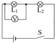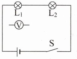 8. (2024·海南中考)如图所示$,L_1 $和$ L_2 $串联,用电压表测量$ L_1 $两端的电压,请将电路图补充完整。