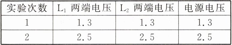 的灯泡,进行多次实验。(5)实验应用:如果电源电压为3 V,那么根据探究的结论,灯$L_1$两端的电压为