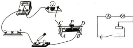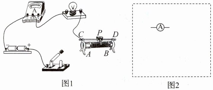 (1)要求滑动变阻器滑片向左移动时能使灯亮度变暗。请用笔画线代替导线连接如图1实物图,并在图2虚线框中画出相应的电路图。