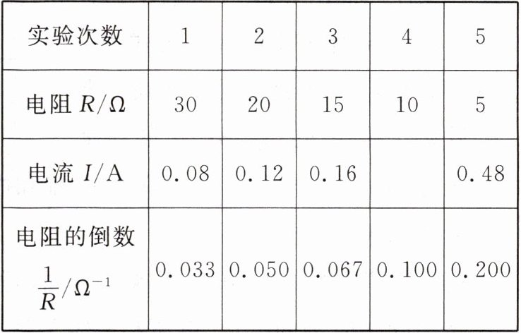 | 电阻R/Ω | 30 | 20 | 15 | 10 | 5 |