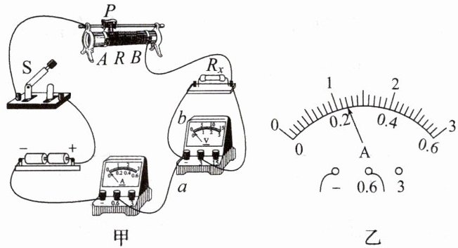(选填“a”或“b”)有断路。(5)排除故障,闭合开关,移动滑片 P,当电压表示数为 1.2 V 时,电流表示数如图乙所示,电流大小为
