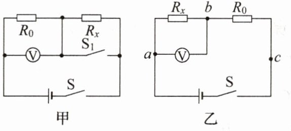 (用$U_{1}$、$U_{2}和R_{0}$表示)。方案二:如图乙所示。