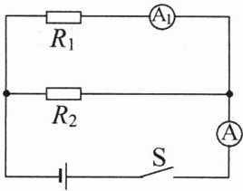 8.(2025·合肥期末)如图所示,电源电压保持不变,电阻$R_{1}= 15\space \Omega$,闭合开关S,电流表$A_{1}$的示数为0.2 A,电流表A的示数为0.5 A,则电阻$R_{2}= $