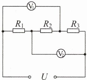 6.(2024秋·云南质检)如图所示的电路中,$R_{1}= 3\space \Omega$,$R_{2}= 15\space \Omega$,电压表$V_{1}和V_{2}$的示数分别是6 V和17 V,则$R_{3}$的阻值为 (