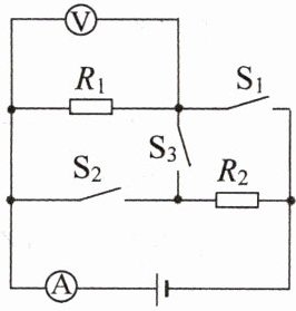 )A.只闭合开关$S_{1}与只断开开关S_{2}$时,电路中都是只有$R_{2}$工作