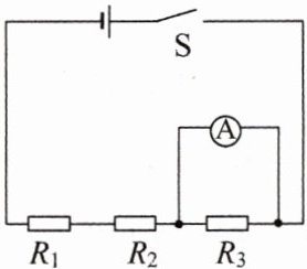 10. 如图所示,电源电压不变,$R_{2}= 6\space \Omega$,$R_{3}= 4\space \Omega$。$R_{1}$两端加电压4 V时,通过的电流正好是2 A,则$R_{1}$的电阻是