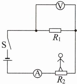 6.(2024秋·长沙质检)某物理兴趣小组设计了一款测量体重的装置,其结构原理如图所示。电源电压恒定$,R_1$是定值电阻。$R_2$是压敏电阻,其阻值随所受压力的增大而减小。当体重比小希重的小阳站在装置上时,电表示数变化情况正确的是(