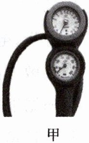 8.随着我国经济的发展,人民生活水平日益提高,我国出现了越来越多的潜水爱好者。为了保障安全,潜水员潜水时会佩戴如图甲所示的水压表和深度表。图乙是某深度表的工作原理简化电路图,电源电压U= 6V且恒定不变,定值电阻R₀= 15Ω,电压表测量范围为0~3V,R_P是阻值随水深度变化的电阻,其变化关系图像如图丙所示,R_P允许通过的最大电流为0.24A。求: