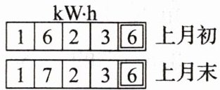 4.(教材改编题)小聪家上月初和上月末的电能表示数如图所示,则他家上个月的用电量是