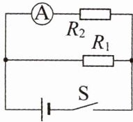 8.如图所示,电源两端的电压保持不变。电阻$R_1$的阻值为20Ω,电阻$R_2$的阻值为30Ω,当闭合开关S时,电流表的示数为0.2A。求:
