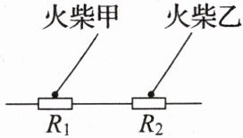2.(2024秋·莆田质检)将两根发热电阻丝$R_1、$$R_2$串联起来接在电路中,如图所示,若$R_1<R_2,$经过足够长的时间,先被点燃的火柴是(