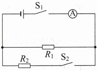 如图所示,电源电压不变,先闭合开关$S_{1}$,电流表示数为$0.1\ \text{A}$,再闭合开关$S_{2}$,电流表示数增加到$0.3\ \text{A}$,则: