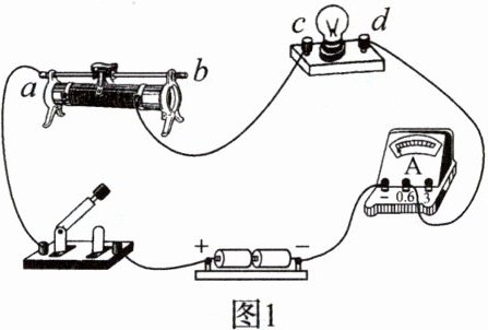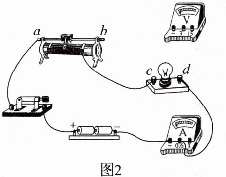 (2)小芳想通过测量ab接线柱间、cd接线柱间的电压找出看不到灯亮的原因。请在图2中将用电压表测ab接线柱间的电压时的实物图补充完整。