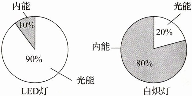 D.电能转化为光能的效率:LED灯高于白炽灯