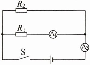 4. (2024秋·石家庄质检)如图所示$,A_1、$$A_2$是完全相同的两个电流表,都有0~3 A和0~0.6 A两个测量范围,闭合开关后,发现两个电流表指针偏转的角度相同,通过$R_1、$$R_2$的电流分别为$I_1、$$I_2;R_1、$$R_2$的电功率分别为$P_1、$$P_2;$相同时间内通过$R_1、$$R_2$的电流做的功分别为$W_1、$$W_2;$相同时间内$R_1、$$R_2$产生的热量分别为$Q_1、$$Q_2。$下列说法正确的是(