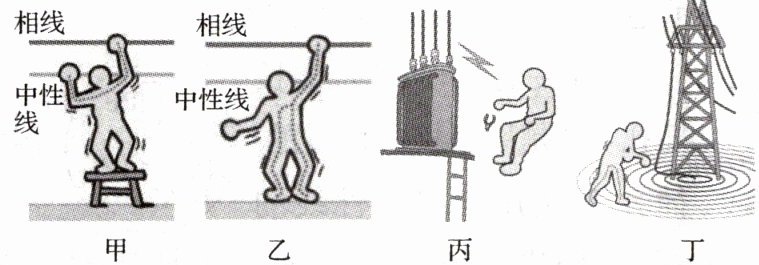 形成闭合电路,所以会发生触电。(4)图丁中,人体靠近