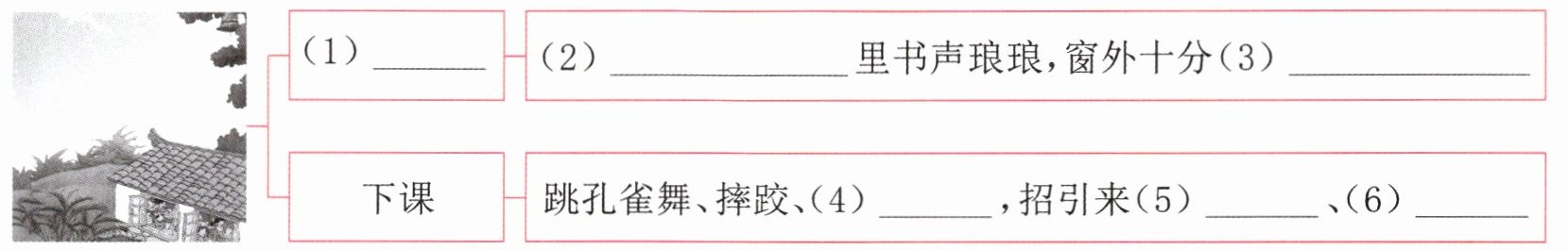 (1)______ (2)______里书声琅琅,窗外十分(3)______