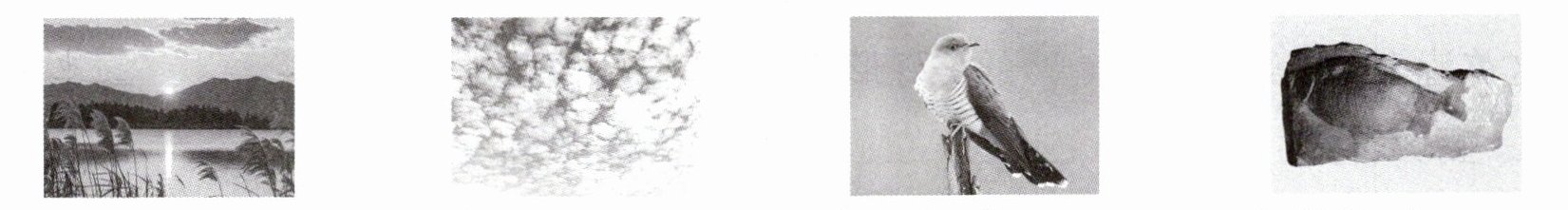 晚霞(______) 棉花云(______) 布谷鸟叫(______) 鱼类化石(______)