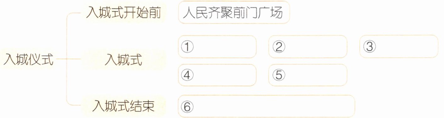 (1)①装甲部队入城 ②炮兵部队入城 ③坦克部队入城 ④骑兵部队入城 ⑤步兵部队入城 ⑥无数人欢送钢铁机械部队