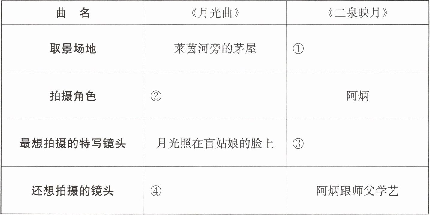 (示例)③阿炳在泉边投入地拉着二胡 ④贝多芬在客店记录《月光曲》