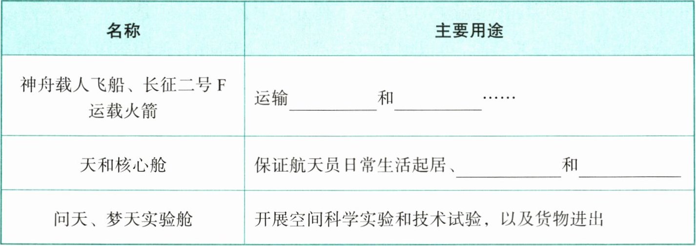 | 天和核心舱 | 保证航天员日常生活起居、______和______ |