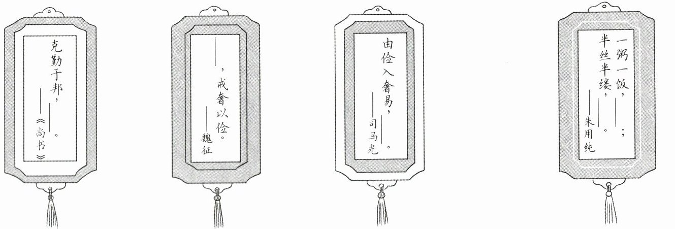 7. 班会上,同学们分享了父母对自己的教导。壮壮想将父母教导自己的话制成书签送给同学们,请帮他完善书签。(5 分)