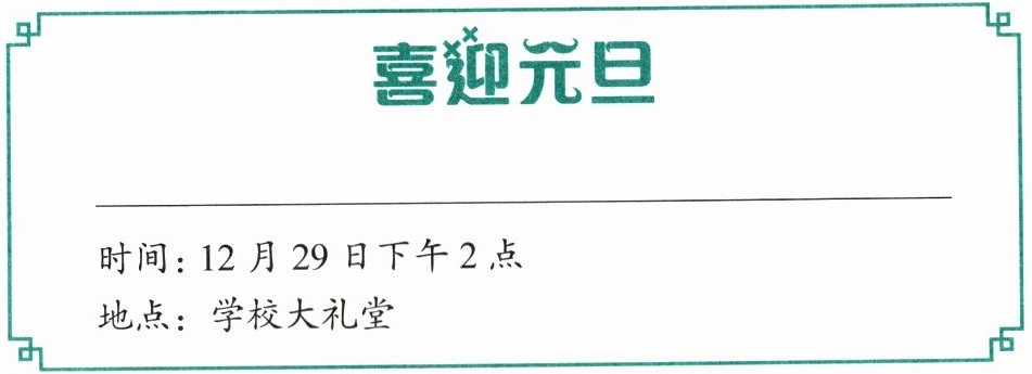 8. 学校准备举办元旦联欢会,下面是设计的海报,请据此完成练习。(4 分)