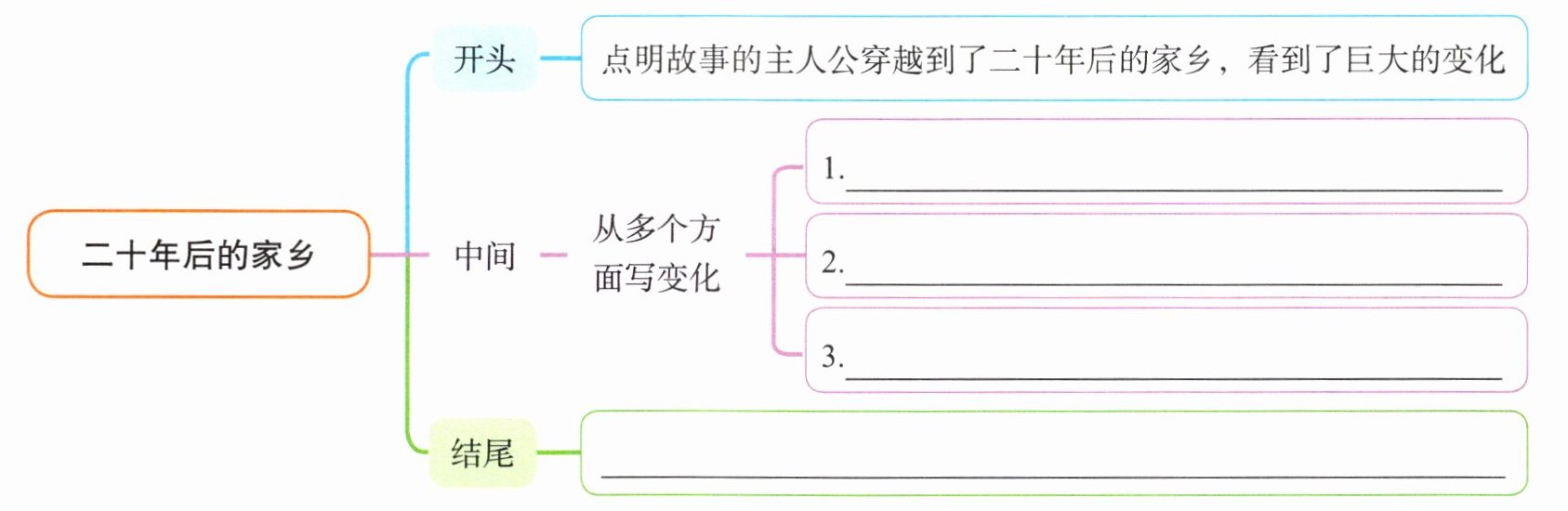 1. 环境的变化(如空气清新、绿树成荫);2. 交通的变化(如智能交通工具、交通顺畅);3. 生活的变化(如智能家居、机器人服务);结尾:表达对家乡变化的赞叹和对家乡未来的美好祝愿。