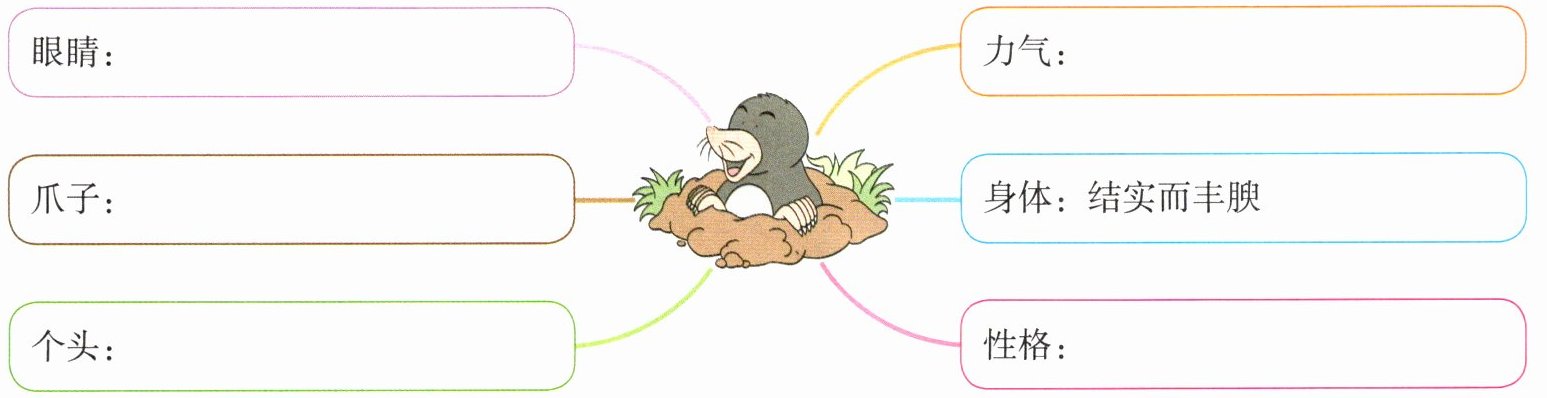 1. 你从文中获得了哪些关于鼹鼠的信息?补全思维导图。