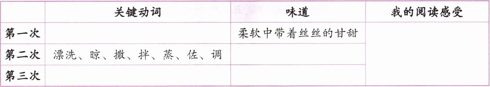 | |关键动词|味道|我的阅读感受|